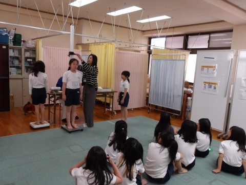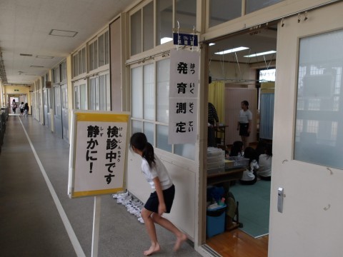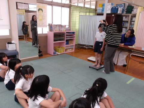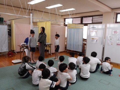 2測定をしています。きちんと静かに座って順番を待っています。大きくなっていましたか?