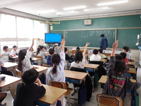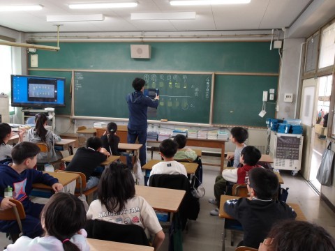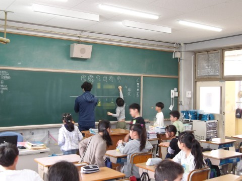 そうじの係や給食当番を決めています。先生が,黒板に貼ったネームプレートをとるお手伝いを頼むと,みんなが続々と前に出て,進んで作業を手伝う姿は,とても素晴らしいです。
