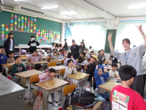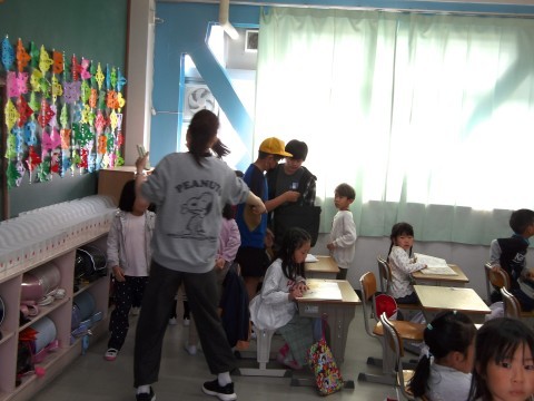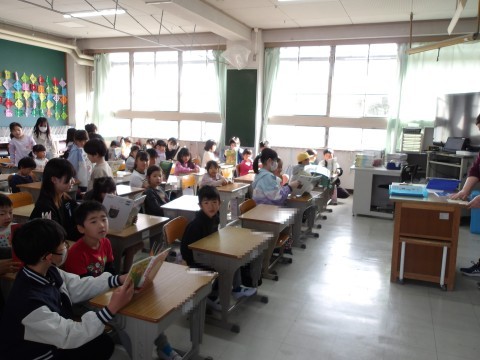 1年生の教室をのぞくと,元気な「おはようございます」のあいさつが返ってきます。