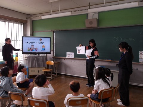 あおぞら学級の2年生が学級開きをしています。「○○さんの隣の,□□です。」と自己紹介をしています。
