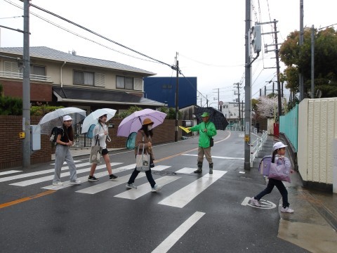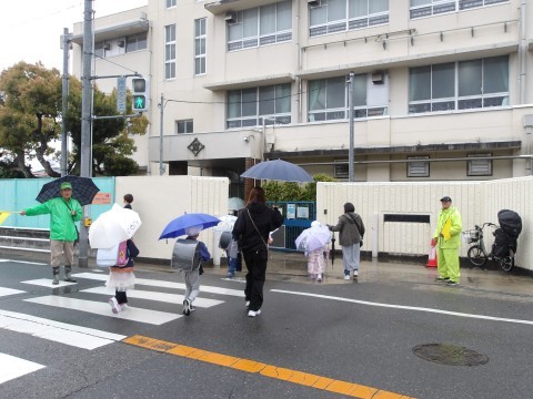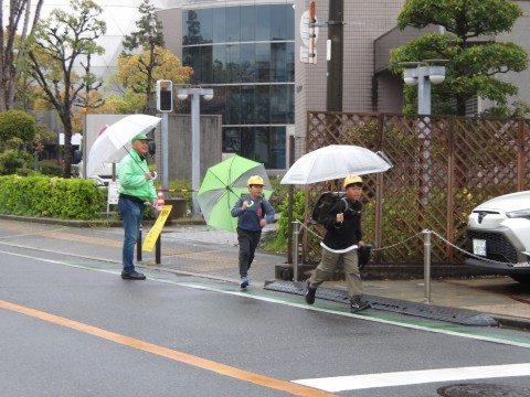 今年度も,たくさんの見守り隊の方々に,登校を見守っていただいています。ありがとうございます。あたたかいですが,雨の朝になりました。1年生は,上手に雨にぬれずに来れたかな?
