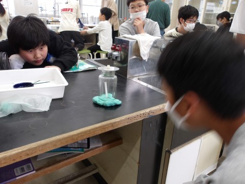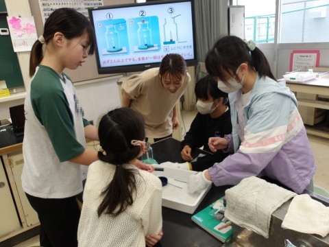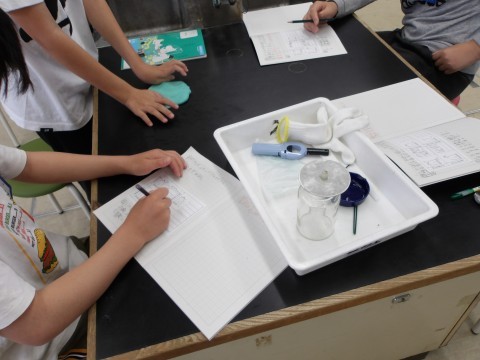 理科では,「なぜ,火は燃え続けられるのか」について考えます。実験で,物を燃やしているときの空気の流れを観察します。