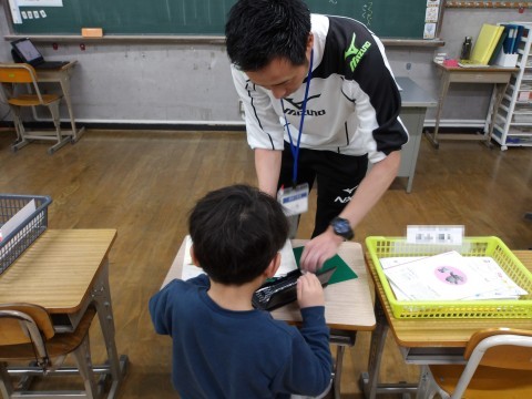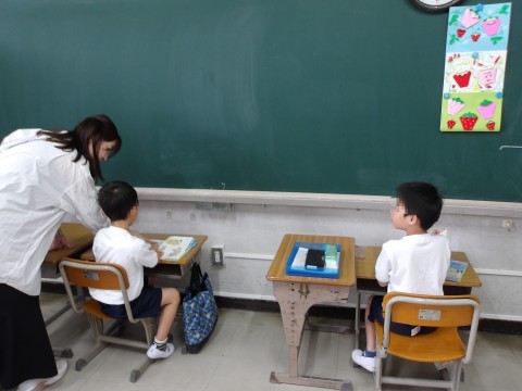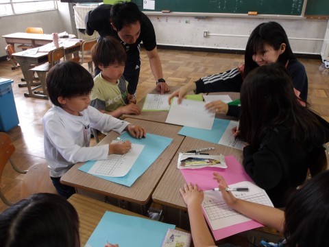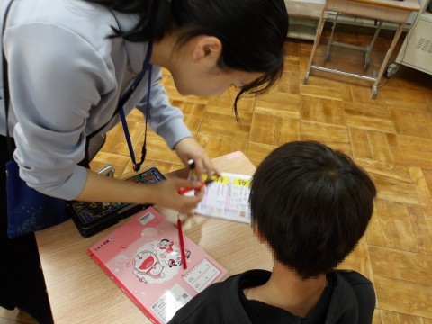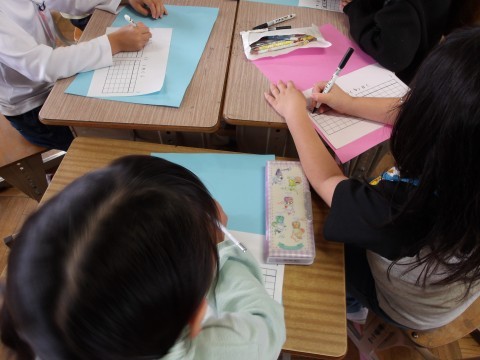 集中をして,同じ学年のお友だちと一緒に学んでいます。