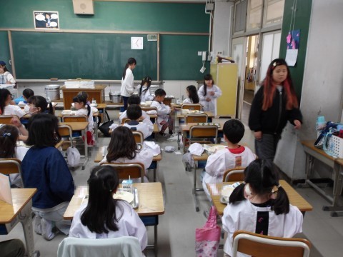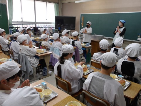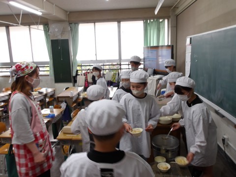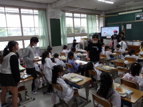 6年生は,食べ終わると1年生のお手伝いをしています。ありがとう。