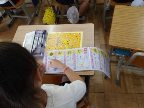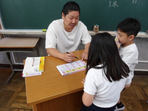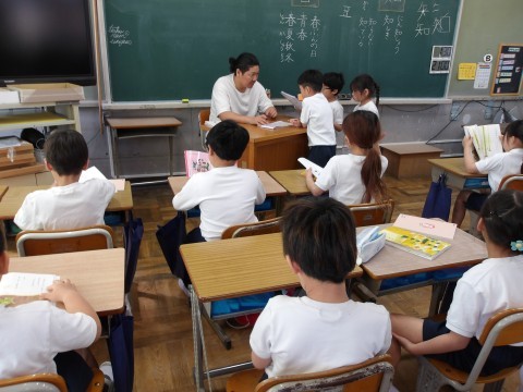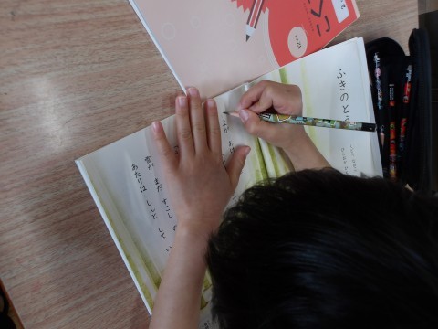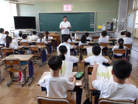漢字の学習が終わったら,言葉の意味を説明しながら先生が読みます。情景を浮かべながら,一緒に音読をします。