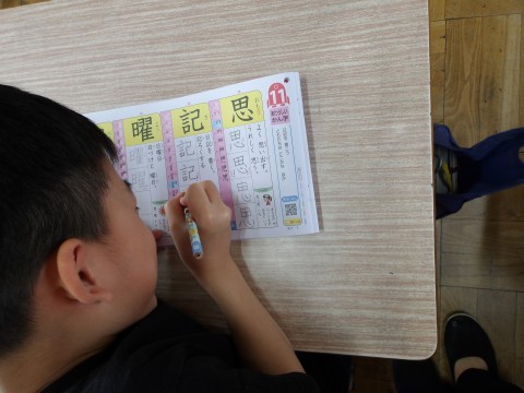 漢字の学習をしています。だんだんとむずかしくなりましたね。