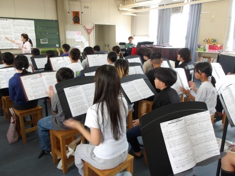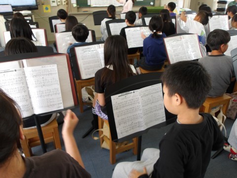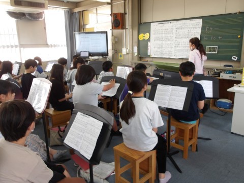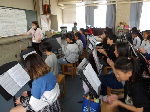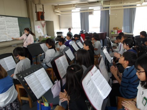 音楽では,「ギャラクシー~銀河をこえて~」のクラッピングに挑戦しています。難しいリズムにも,集中して取り組んでいます。
