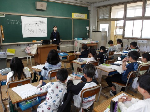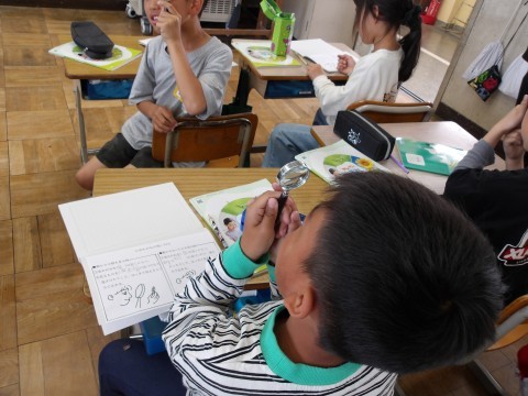 3年生から,理科の学習が始まりました。今日は,虫めがねのお使い方について説明を聞いています。動かないものを観察するとき,動かせるものを観察するときと,使い方は違います。