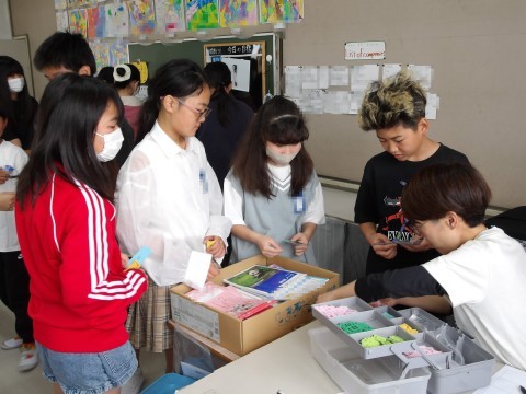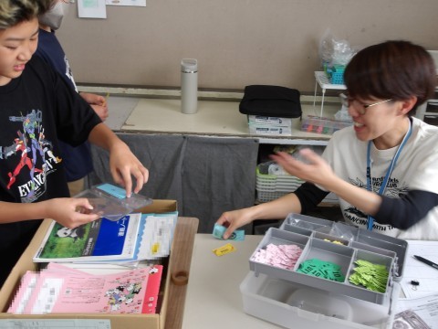 会社活動に使用する学級通貨が配当されています。両替をして,運営準備をしています。