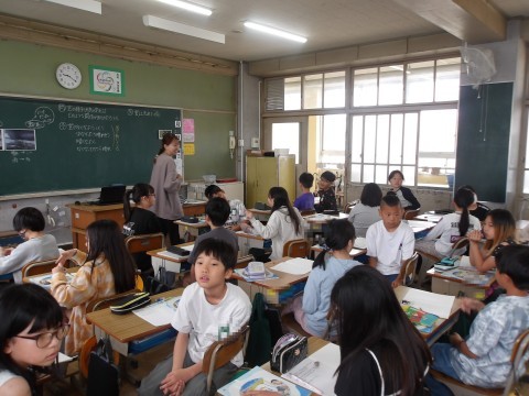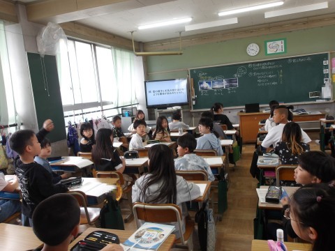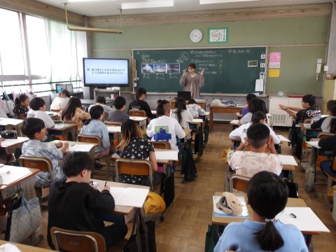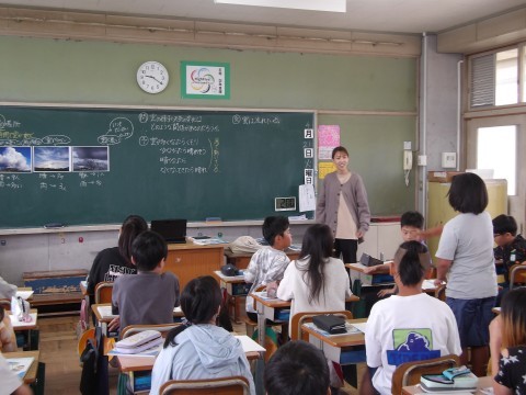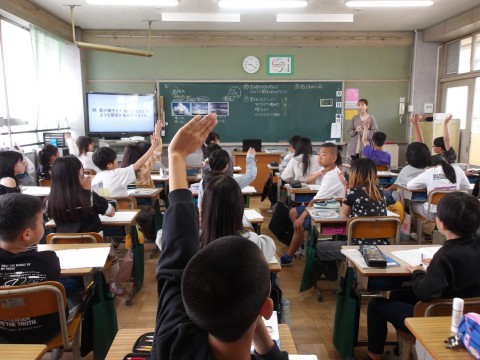 理科では,雲の様子と天気の変化にはどのような関係があるのかについて,考えます。自分の考えをしっかりと発表しています。