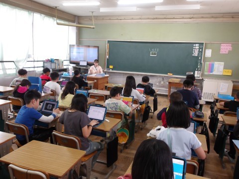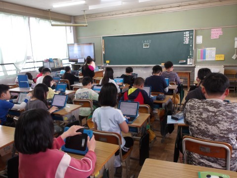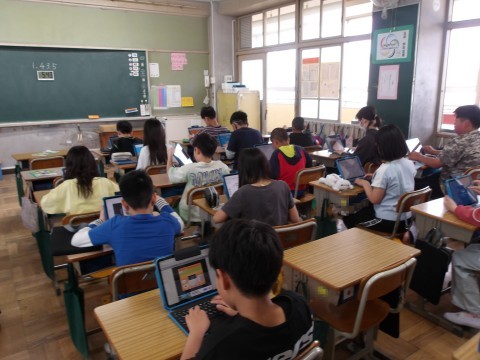 算数「整数と小数」の単元テストが終わった人は,自己紹介カードを仕上げたり,タイピング練習をしたりしています。