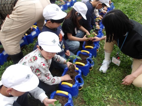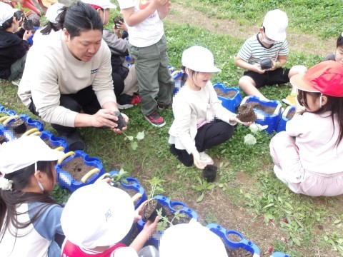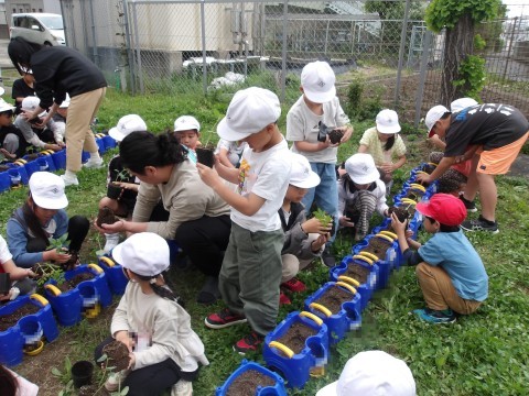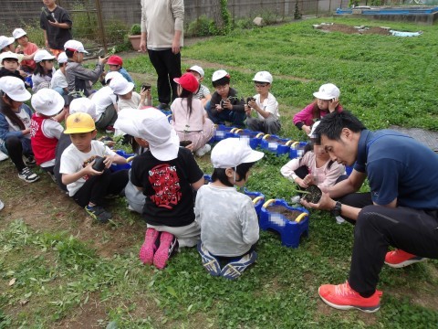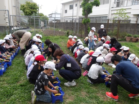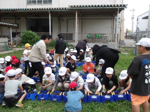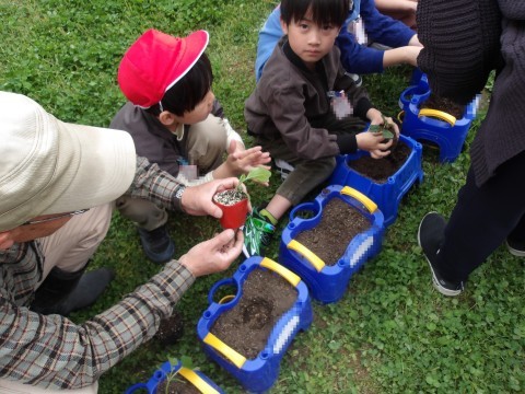生活科で育てる野菜の定植をします。苗までに育てていただいた地域の方に,お礼を言って植え方を教えてもらいます。毎日しっかりとお水やりをして,愛情込めて育てましょう。きっとおいしい野菜が育ちますよ。