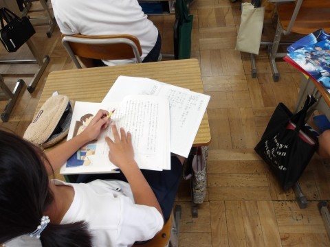国語「銀色の裏地」の漢字練習の後,第2場面の音読をし,内容を読み取っていきます。