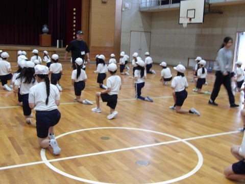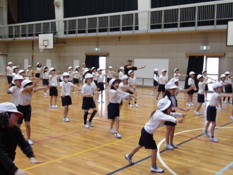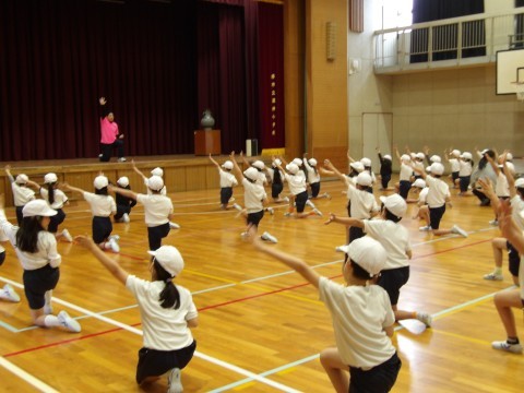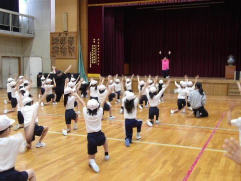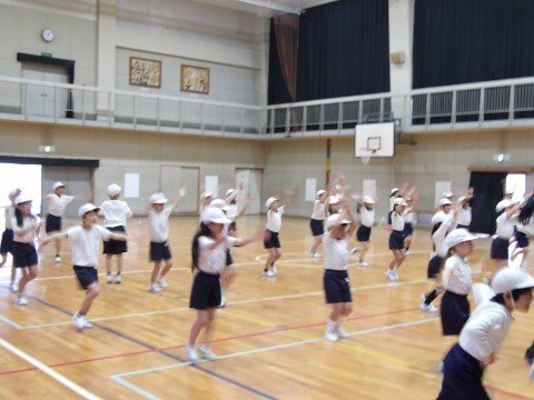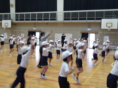体育大会の団体演技の練習をしてます。みんなで合わせて声を出すところがありますが,練習をしていくうちに,そろって大きな声が出るようになってきました。