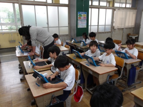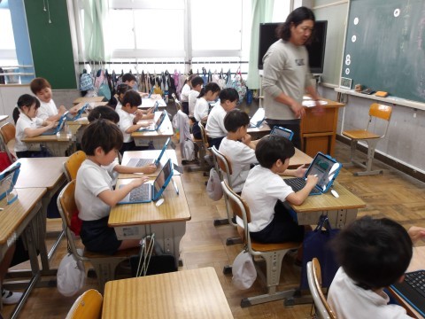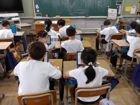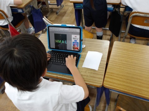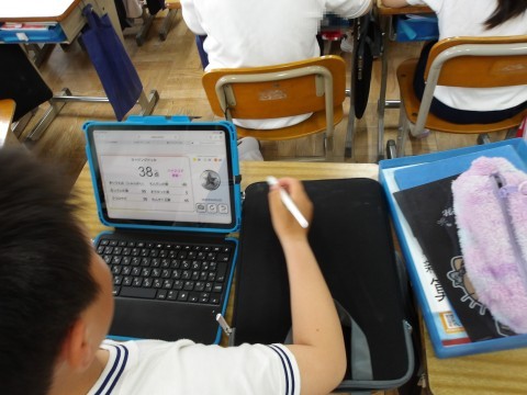 ローマ字打ちのタイピング練習をしています。タブレット端末の中にも,様々なアプリがあるので,自分に合ったもので練習をしています。