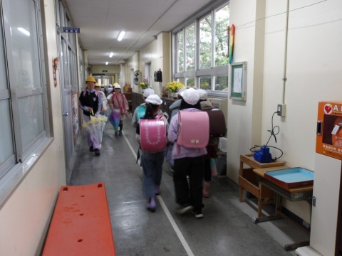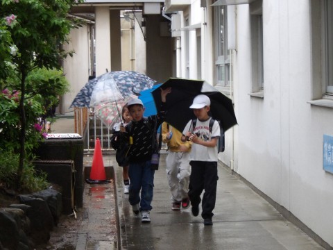 雨が降っているので,周りをよく見て,気を付けて帰りましょう。また,明日。