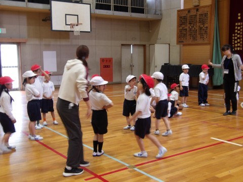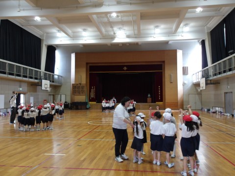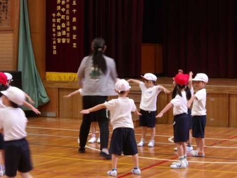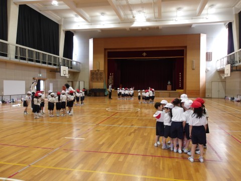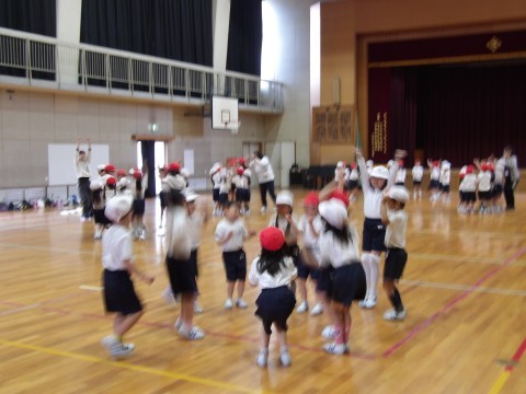 体育大会の団体演技の練習では,移動の練習に入りました。自分な場所や,一緒に踊るお友だちをしっかりと覚えましょう。