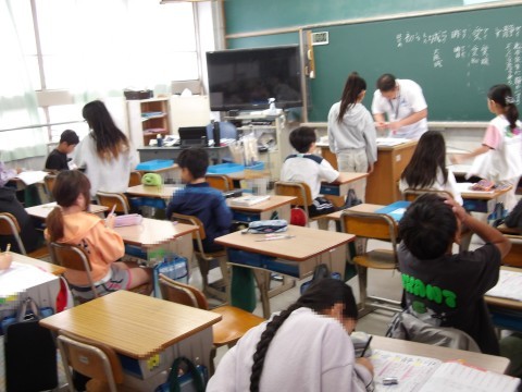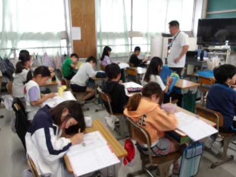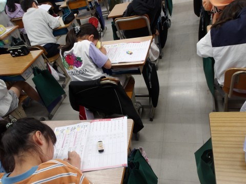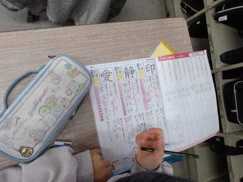 漢字の学習をしています。4年生では,新しく学習した漢字を使った言葉を取り入れて文章を作ります。