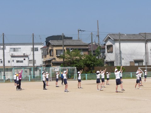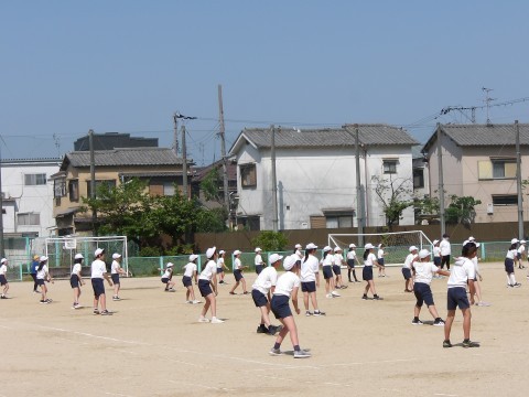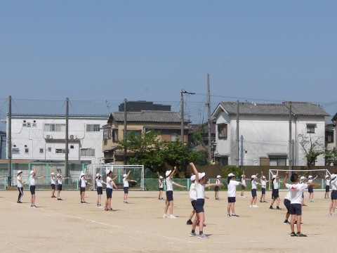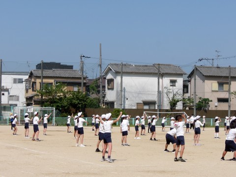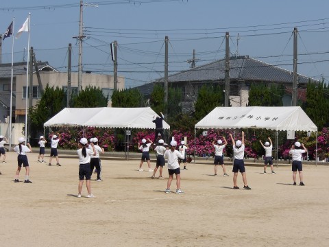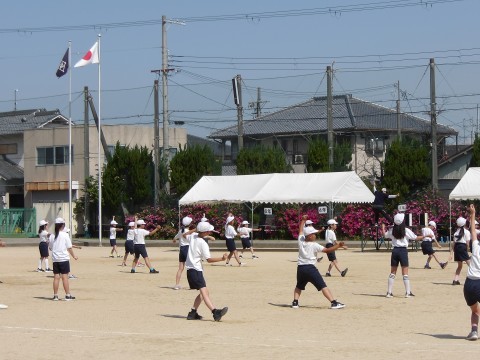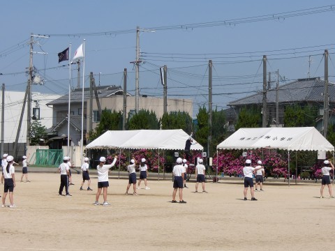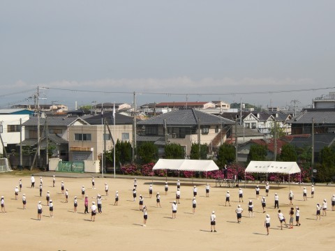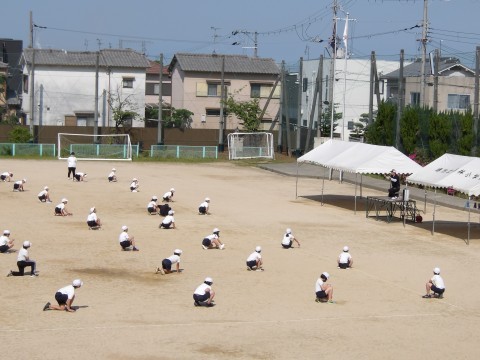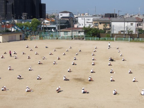 運動場では,体育大会の団体演技の位置取りをしています。