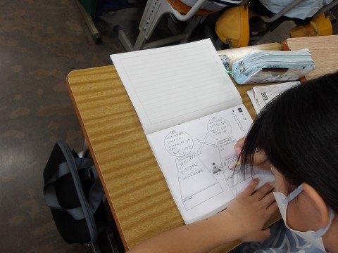 国語「帰り道」では,様々な視点から,「律」と「周也」がどのような人物かを考え,人物像をまとめます。