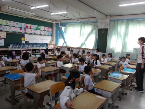 後ろを振り返って,今日の時間割を確認しています。また,用意が終わって本を読んでいます。