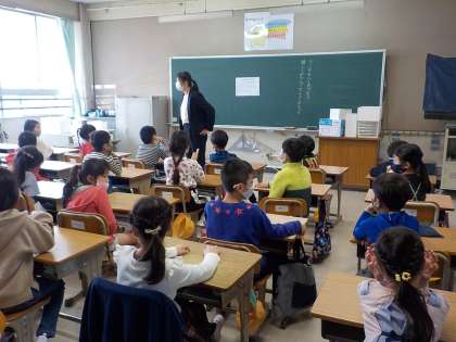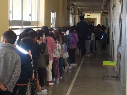 3年生に進級しました。教科書を取りに行くところでした。静かに並ぶことができていました。