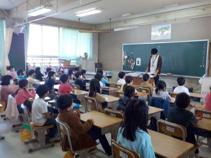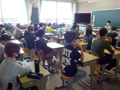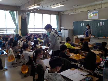 放送朝礼「クラスの様子」 公開日 2021/04/12 更新日 2021/04/12 学校紹介 校長先生のお話を黒板に書き,視覚支援している先生がいました。児童のみなさんは8:25からの朝礼に間に合うように余裕をもって登校しましょう。保護者のみなさまもご協力お願いいたします。