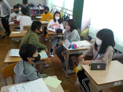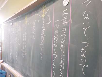 最初と最後の文章が決まっており,その間にどんなことが起こったのかを考えました。学校でおこりそうなことや,日常で起こりそうなこと,昔話なら・・・など,自分たちの班にあったものを選んで考え,学習することができました。