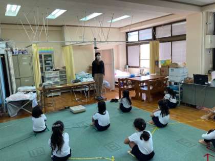 身長と体重を測る,二測定がありました。保健の先生の話をしっかり聞いていました。よろしくお願いします。ありがとうございました。と言える子もいて,とても偉いなと思いました。