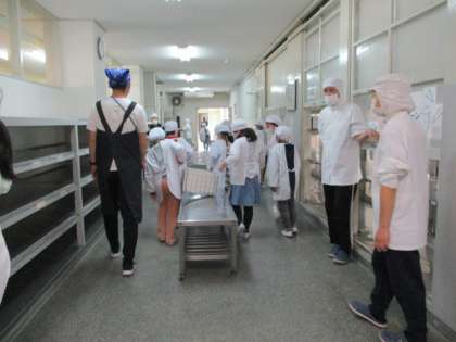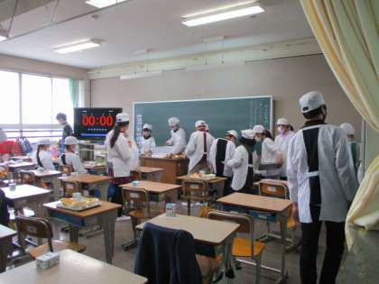 移動も静かに。教室では協力して配膳準備をしています。