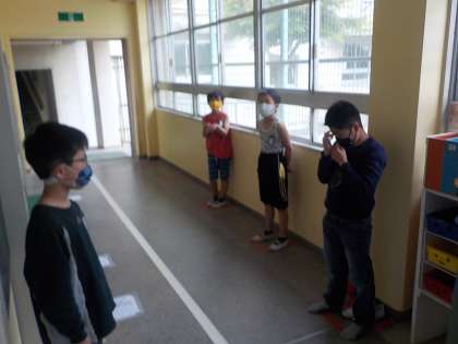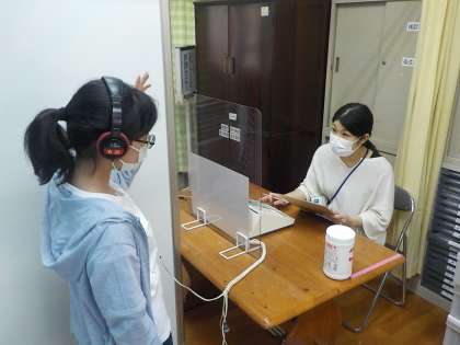 聴力検査を実施しました。小さい音を聞きます。廊下での待ち方,誰一人しゃべらず待っていました。素晴らしかったです!!