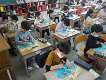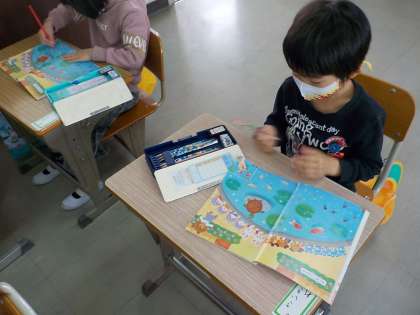 同じなかまを探して教科書に書き込んでいます。