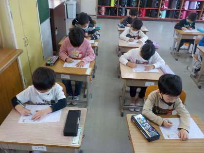 初めてのひらがなは,一年生の「い」でした。