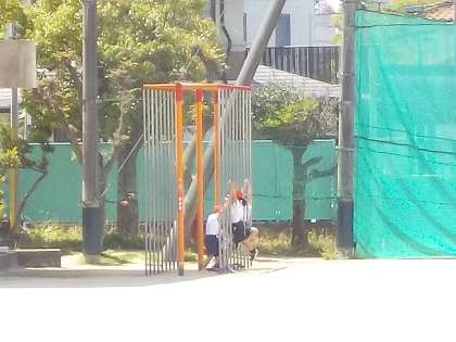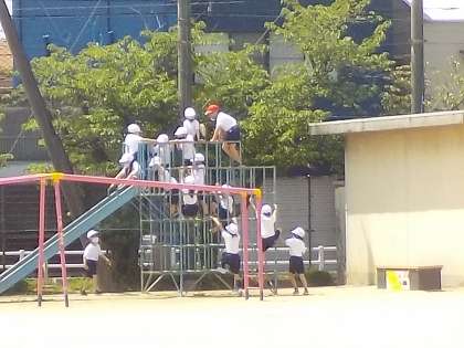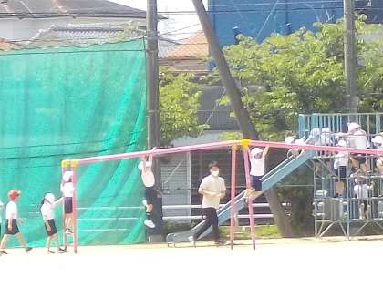 うんてい,ジャングルジム,のぼり棒のサーキットトレーニングで体力づくりをしました。