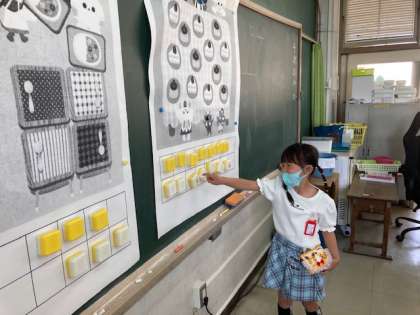 黒板でも,大きなブロックを使っても操作してくれました!