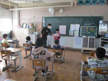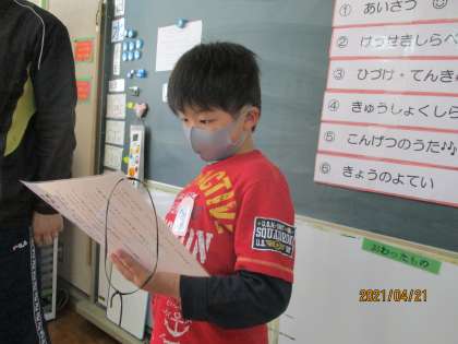出欠確認やお天気調べ,今日の給食の確認をした後