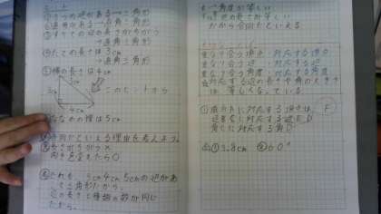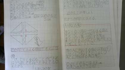 今,算数では「合同な図形」についての学習をしています。高学年にもなるとたくさん書くことがありますが,丁寧で見やすいノートになっています。
