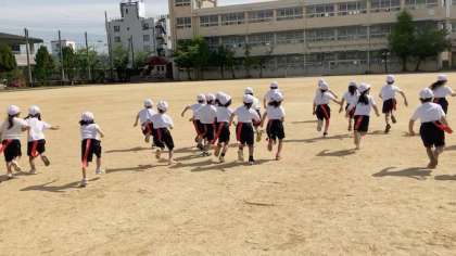 背の順2列の並び方,背の順4列の並び方の練習をしてから,しっぽとりをしました。1時間目から元気に走っていました!ですが,お茶がすぐになくなってしまう子が続出したので,もう少し大きめの水筒を持たせてもらえると有難いです。よろしくお願いします。