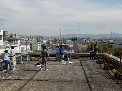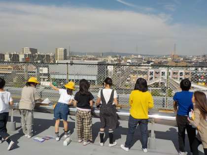 初めて来た屋上や初めて見る景色に興味津々でした。