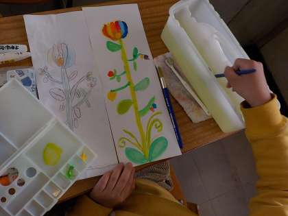 「見たこともない花を描く!」「世界に一つだけの花を描く!」と,思い思いの花を描き上げることができました。