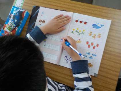 1から5までの数字を教科書に丁寧に書くことができていました。