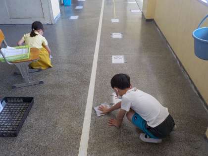 学校をきれいにするために,しっかりとそうじしてくれています。「もくもく,すみずみ,きびきび」を合言葉に今日も掃除を頑張ってくれた3年2組のみんなでした。