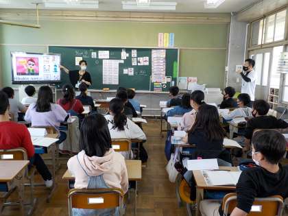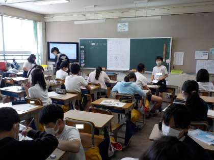 最後の写真は3組の英語です。今年から,英語の先生と担任の先生二人体制で行うことになっています。担任の先生も楽しそうにしていました。