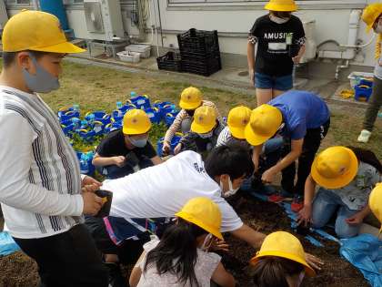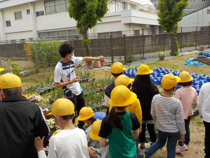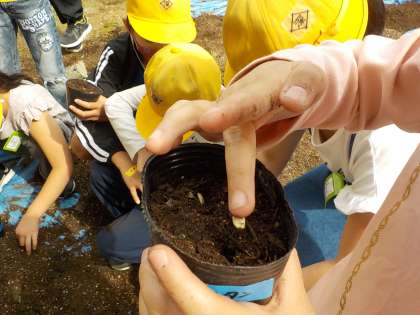 前回の授業で、種を観察したヘチマとヒョウタンを