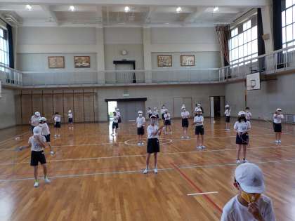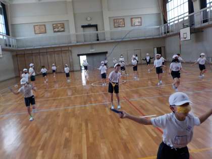 音楽に合わせてリズム縄跳びをしました。今日はもう一回したいと,リクエストがあり,2回行いました。体力アップです!