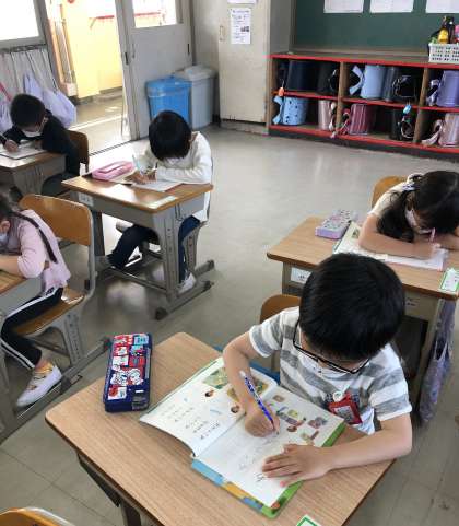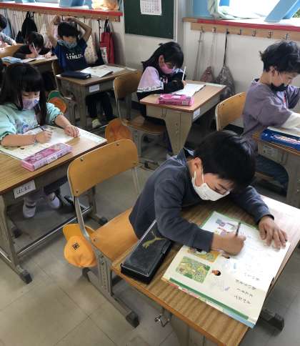 「あ」や「お」など,まだ習っていない難しい字も丁寧に書けました。