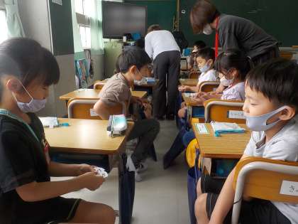 一人で計算カードに取り組んだ後は,ペアで問題を出し合いました。ランドセルのチャックの部分にいつも入れているので,家でも見てあげたり,聞いてあげたりしてみてください!