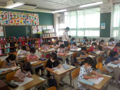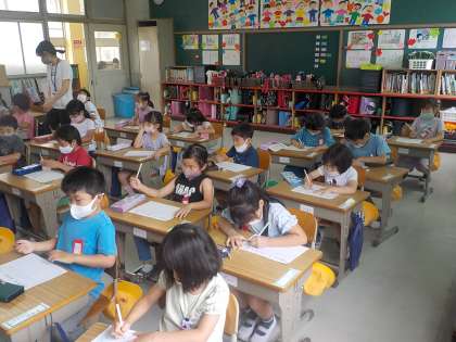 2年生に学校を案内してもらったので,お礼のお手紙を書いています。文章がたくさん書けるようになってきているので,自分の気持ちや,また行きたい場所など,様々なことを書いているひともいました。