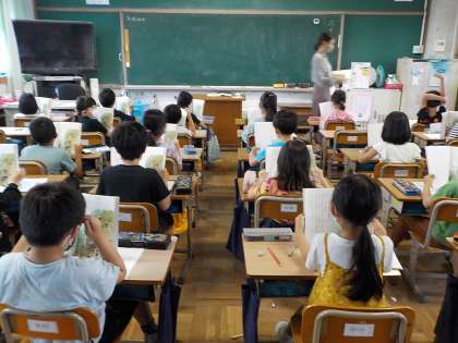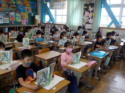 「スイミー」の音読をしました。しっかりと声を出せるように姿勢や本の持ち方に気をつけて読んでいます。みんなはっきりと読むことができていましたね。