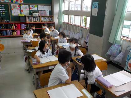 ペアの人ともしっかり話し合いながら,授業を受けています。
